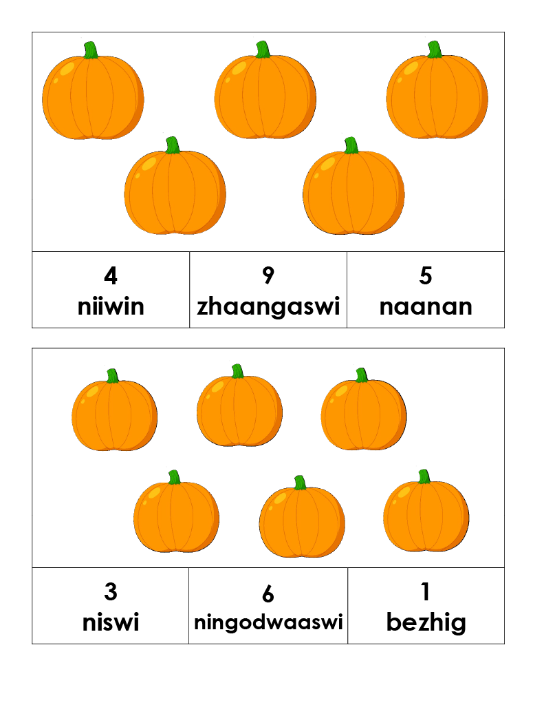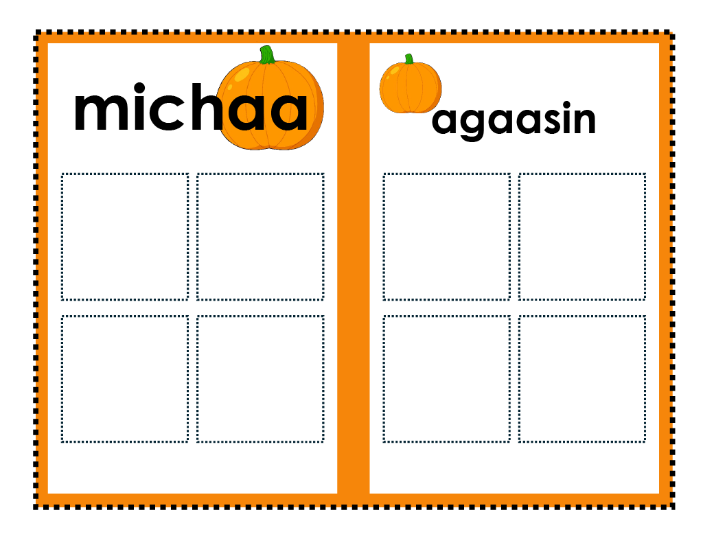 This sequencing activity allows instructors to guide learners through the steps of creating a carved pumpkin. Print copies for your learners, have them cut and paste the steps into order, and then narrate their steps in Anishinaabemowin.